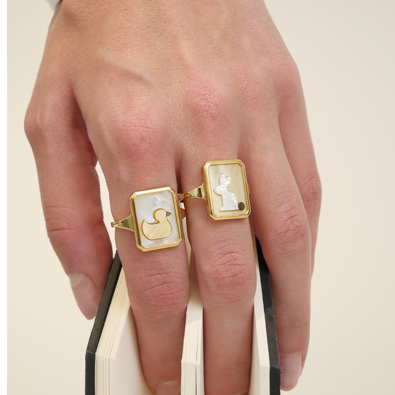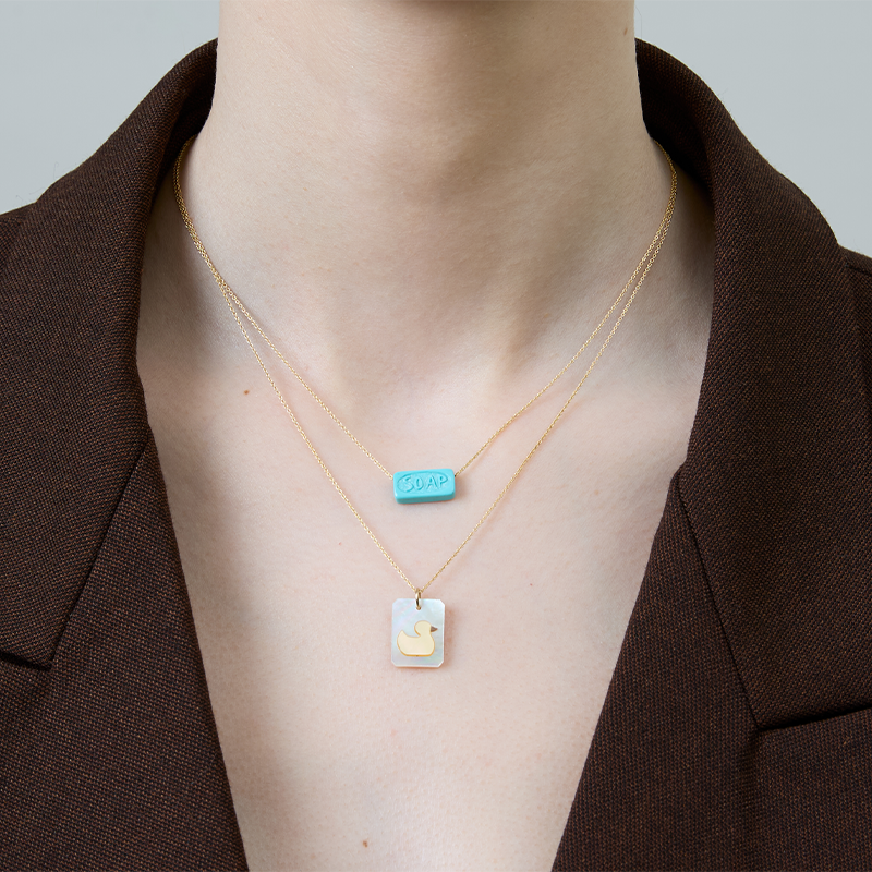 Lust auf eine Kette mit goldenem Wasserhahn oder einer Seife aus Türkis? In der Kollektion „Submerged Dreams“ lässt sich das italienische Brand Aliita von Gegenständen der Badezimmerkultur zu feinsinnigen Schmuckstücken inspirieren, die einen augenzwinkernden Kontrast zwischen Designanspruch und Nostalgie bilden und auf humorvolle Weise mit überlieferten Sehgewohnheiten und Schmucktraditionen brechen. So wie zum Beispiel auch der Anhänger und Ring „Cameo Perla Patito“, den eine gelbe Badeente krönt – kunstvoll in Intarsientechnik gefertigt und auf Perlmutt gebettet.