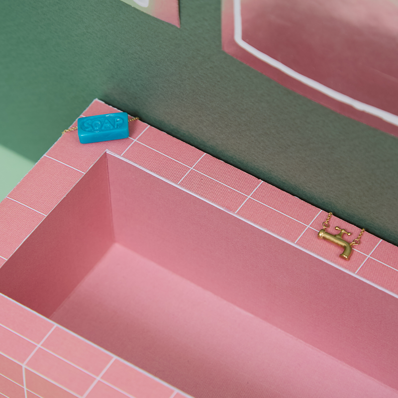 Hintergrund der originellen Schmuckkollektion ist die Ausstellung „Aliita Bath“, die das Mailänder Brand im Rahmen der Milano Design Week mit den Marken Dornbracht und Mutina realisiert. Das gemeinsame Ziel: eine Hommage an das Badezimmer als Ort der Ruhe und des Rückzugs.