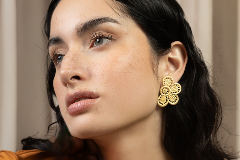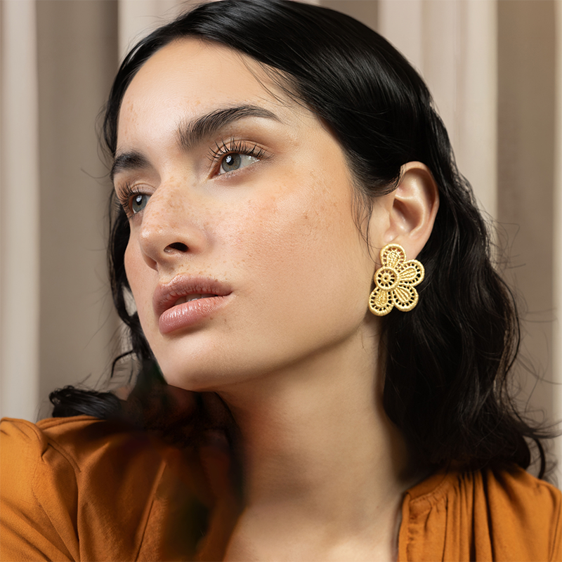 Ein besonderes Highlight sind die „Blooming Lace“-Ohrringe, die Brigitte Adolph selbst als ein „poetisches Statement“ beschreibt. Die kunstvoll gearbeiteten Blüten aus Gold oder alternativ auch aus Silber schmiegen sich sanft an die Wange der Trägerin und entfalten ihren floralen Zauber. Trotz ihrer Größe wirken sie durch die luftige Verarbeitung erstaunlich leicht und verleihen jedem Look eine feminine Strahlkraft.