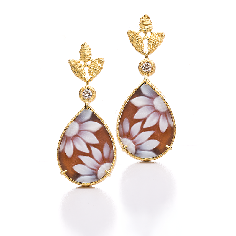 Ebenfalls floral inspiriert ist die wunderschöne Linie „Cameo Botanica“. Sie verbindet die charakteristische Spitzenornamentik von Brigitte Adolph mit kunstvoll von Hand gefertigten Kameen aus dem Süden Italiens. Ob als Ohrringe oder als Anhänger, diese edlen Eyecatcher sind eine Hommage an die zeitlose Schönheit der Blumen und ideal für feminine Frühlings- und Sommerlooks.
