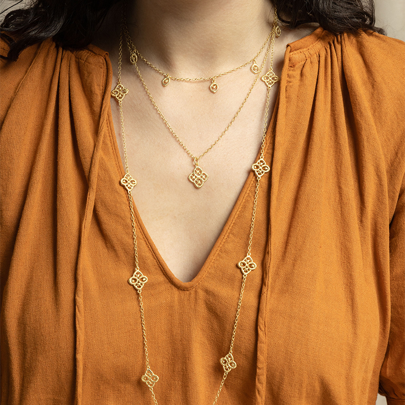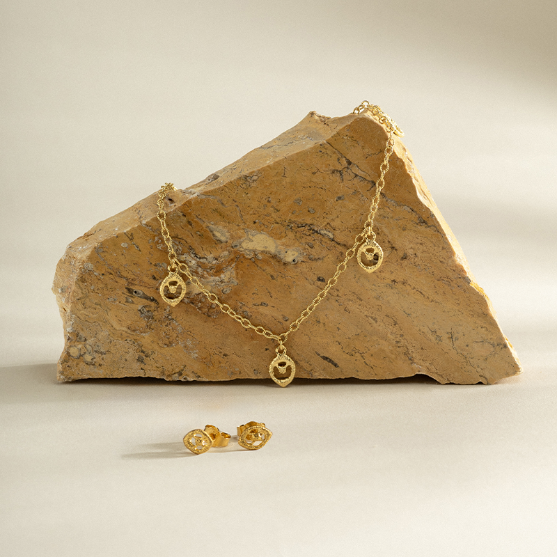 Für unbeschwerte Eleganz steht „Chiara Dew“. Das Design der zarten Goldkette soll an feine Tautropfen erinnern, die sanft über die Haut gleiten. Zugleich lässig und edel in der Ausstrahlung avanciert diese Kette garantiert nicht nur an sonnigen Tagen zum absoluten Lieblingsstück. Passende Ohrringe runden dabei den Look gekonnt ab und unterstreichen den leichten, lebensfrohen Charakter der Kollektion.