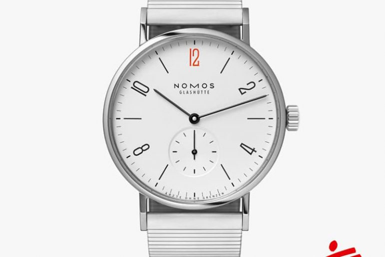 Nun gibt es erstmalig bei Nomos Glashütte die „Tangomat für Ärzte ohne Grenzen Deutschland“. Die auf 250 Stück limitierte Edition hat eine rote Zwölf auf dem Zifferblatt, dies ist das Erkennungszeichen und verweist auf die Hilfsorganisation, die sich weltweit in Krisengebieten der Welt engagiert.