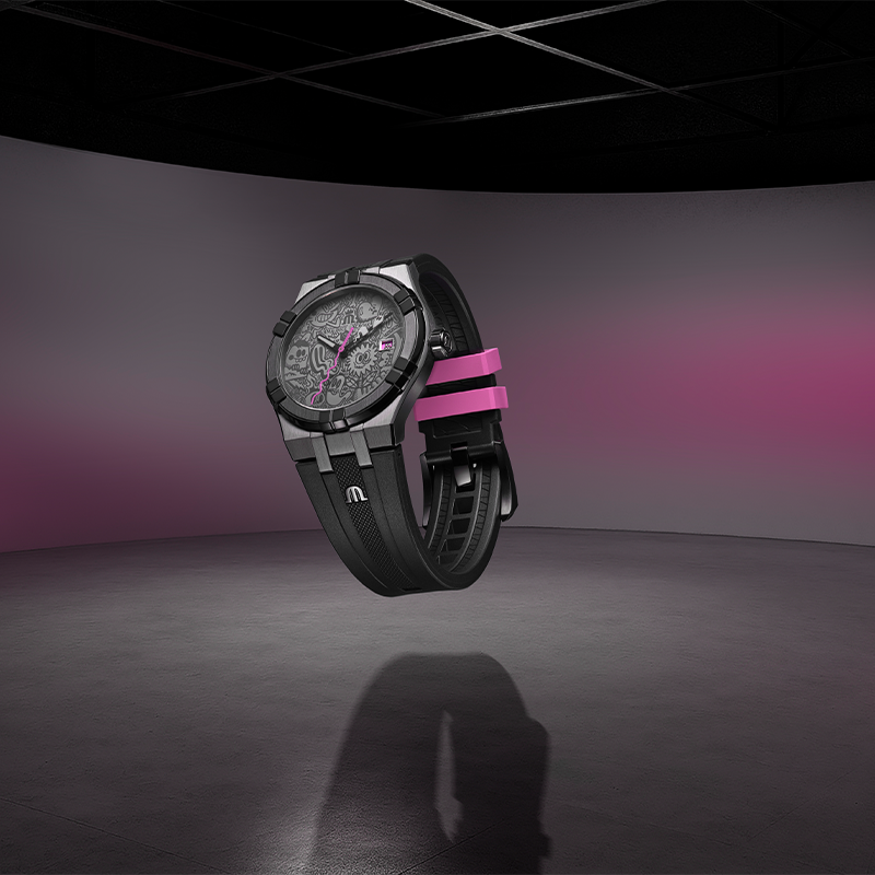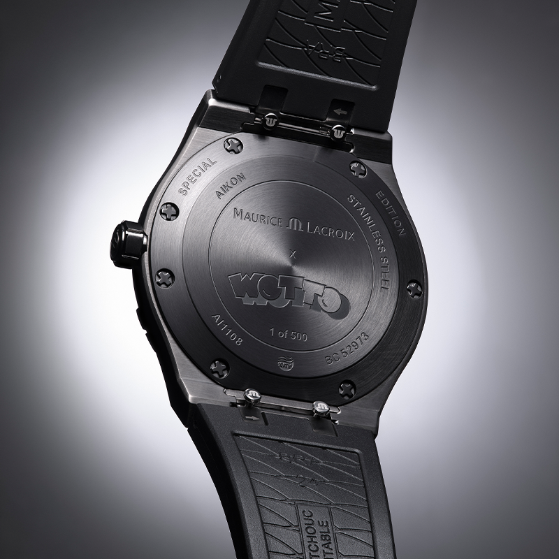 Auf der Rückseite können sich Kunstfans über den Schriftzug „Maurice Lacroix x WOTTO“ und eine Seriennummer freuen, die sowohl die Echtheit der Uhr als auch die Limitierung auf 500 Exemplare belegt.