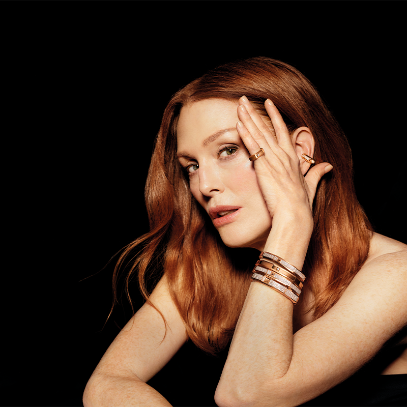 Julianne Moore bringt eine ruhige, reflektierte Tiefe in die Kampagne ein. Die Oscar-prämierte Schauspielerin verbindet emotionale Intensität mit natürlicher Eleganz. Ihre Sinn für Kunst, Architektur und Design harmoniert mit der Ästhetik der Kollektion, die mit klaren Linien, reduzierten Formen und einer fast architektonischen Präzision fasziniert.