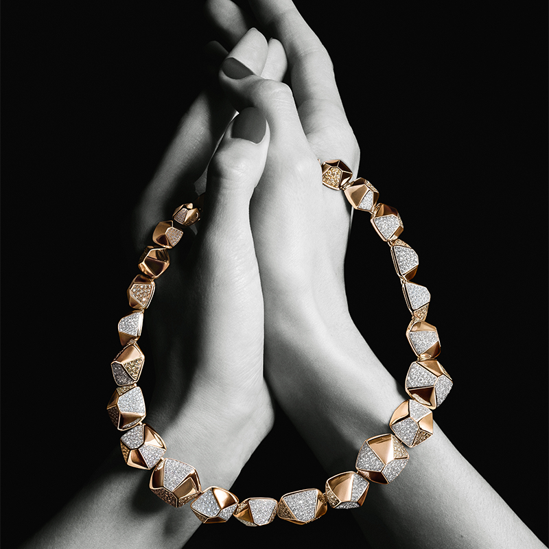 „Nudo“ lässt Edelsteine in intensiven Farben leuchten, frei und voller Emotion. „Iconica“ und „Catene“ verbinden skulpturales Gold mit fließender Sinnlichkeit und umhüllen den Körper mit taktiler Präsenz. „Pomellato Together“ übersetzt moderne Verbundenheit in klare, zeitlose Linien, während „Pentagoni“ mit geometrischer Präzision ein selbstbewusstes Statement zeitgenössischer Eleganz setzt. Die Botschaft ist klar: Das ist Schmuck, der nicht schmückt, sondern stärkt – getragen von Frauen, die ihren eigenen Weg gehen.