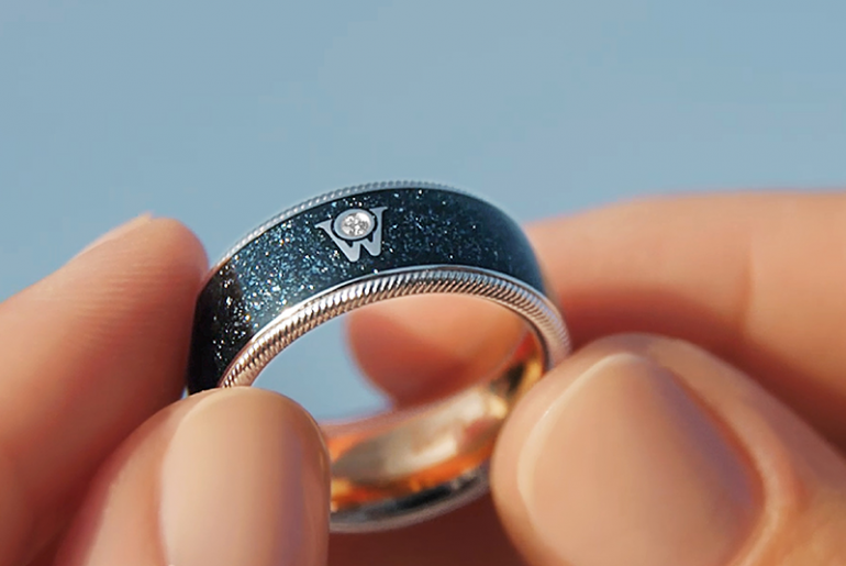 Prickelnde Magie mit einer Prise Coolness zeichnet das gelungene Ring-Design aus, das mit seinem reduzierten Look tatsächlich eine Premiere in der 129-jährigen Geschichte der Luxusmarke darstellt. So ist „Ich träume“ der erste Wellendorff-Ring, der auf ein Gravurmuster verzichtet und stattdessen ganz auf die starke Wirkung kristallschwarzer Wellendorff-Kaltemaille setzt, die hier auf kunstvolle Weise mit funkelndem Sternenstaub versetzt wurde. Das faszinierende Ergebnis ist ein geheimnisvolles Glitzern, das sogleich an den Zauber eines nächtlichen Sternenhimmel denken lässt.