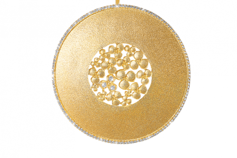 Schmuck von Bernd Wolf ist unverwechselbar. Gründe für die hohe Wiedererkennbarkeit sind die klare, reduzierte Formensprache und die in aufwendiger Handarbeit erzeugte Gestaltung der Oberflächenstruktur. Der wunderschöne Anhänger „Liamis“ in sonnigem Gold ist dafür ein perfektes Beispiel.