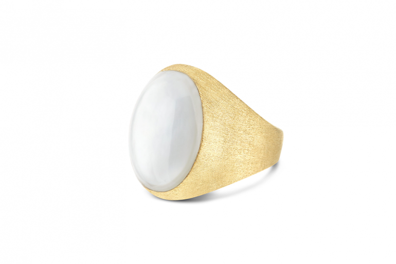 Nanis Italian Jewels: „Boules“-Ring (AH7-609) aus 18 Karat Gold mit Perlmutt, ca. 2580 Euro.
