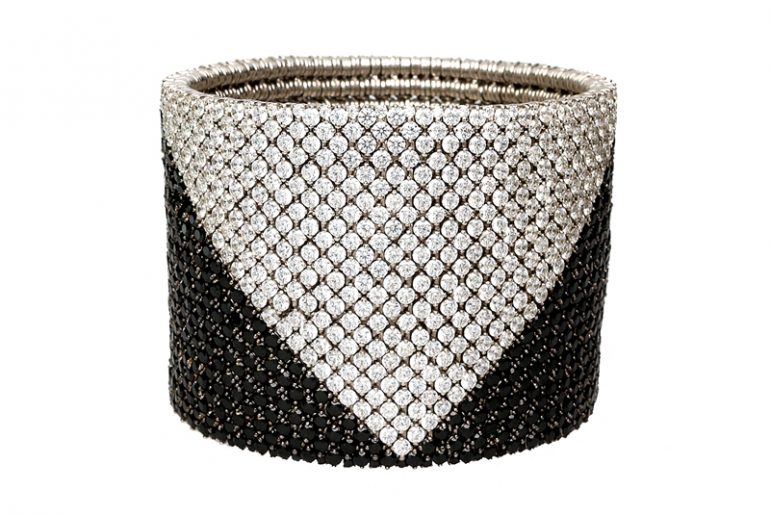 Armband aus 18 Karat Weißgold mit weißen und schwarzen Diamanaten, Preis auf Anfrage.