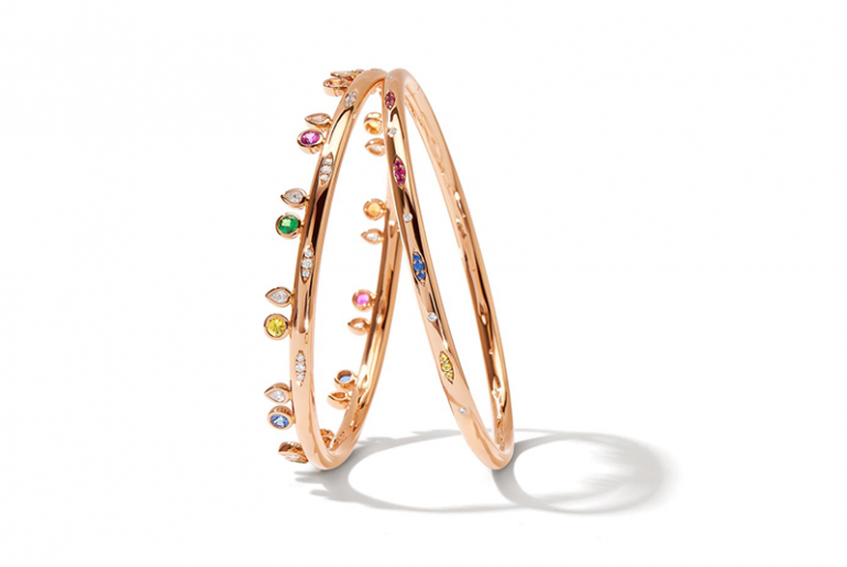 Wintermüde? Die Armspangen „Candy“ aus der farbenfrohen „Gypsy“-Kollektion von Tamara Comolli steigern mit leuchtenden Edelsteinen und dem Glanz von 18 Karat Roségold die Vorfreude auf Frühling und Sommer.
