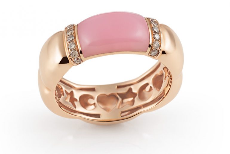 Ring aus 750 Roségold mit rosafarbener Koralle, Preis auf Anfrage.
