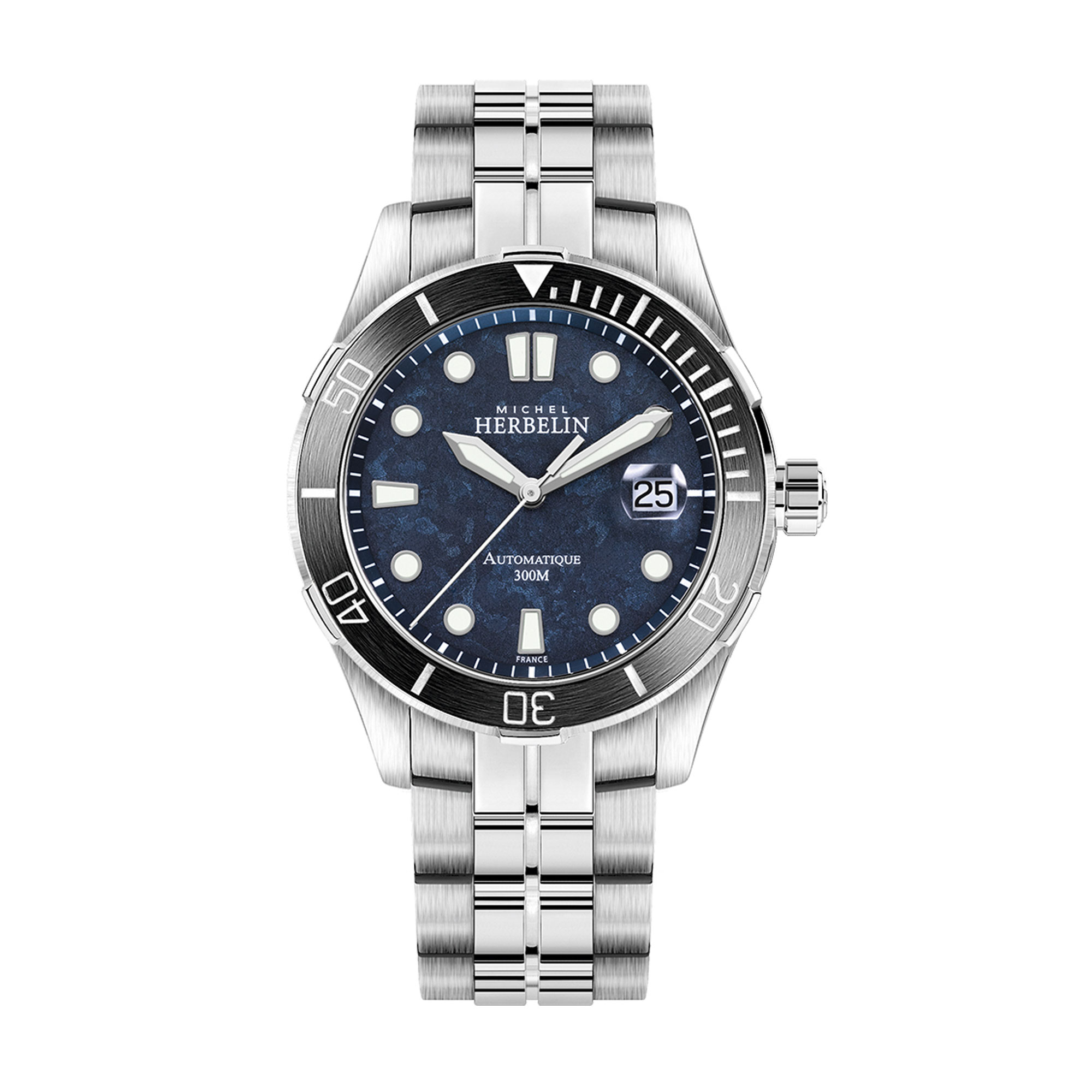 Das runde Edelstahlgehäuse der Herren-Automatikuhr mit einseitiger Drehlünette verbindet sich fließend mit dem hochwertigen Armband aus Edelstahl. Dessen Sicherheitsfaltschließe ist mit einer Oversuitverlängerung ausgestattet, die es erlaubt, die Uhr auch über dem Taucheranzug zu tragen. Im Inneren des Gehäuses tickt ein hochwertiges, in der Schweiz gefertigtes Automatikwerk (Selitta SW 200). Das Saphirglas ist von innen entspiegeltes und mit einer Lupe über dem Datum bei der 3 zur besseren Ablesbarkeit unter Wasser versehen. Die verschraubten Kronen sowie ein verschraubter Gehäuseboden sind für alle Sportler, insbesondere Taucher perfekt. Die Wasserdichte der Newport Trophy Automatik beträgt 30 bar.