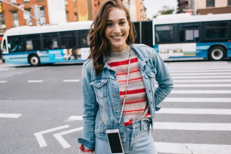 Abgesehen davon sind Smartphoneketten nicht nur praktisch, sondern auch ein echtes It-Piece. Trendscouts sprechen von „Digital Jewelry“ – vorausgesetzt sie sind so clever gedacht und sehen so schick aus wie die des jungen Labels studioNooks. Der besondere Clou von studioNooks, hinter dem die beiden Freundinnen Arianna Madiotto und Sylvie Römer stehen: Das transparente Case ist mit einer Kette aus Leder und hübschen Schmucksteinenperlen wie Achat, Jaspis oder Amazonit verbunden. Dank zwei Karabinerverschlüssen lässt sich das Case blitzschnell auswechseln. Zudem lassen sich die dekorativen Schmuckperlen, die einen Teil der insgesamt 120 Zentimeter langen Kette ausmachen, auch getrennt als Armschmuck tragen. So wird aus der Crossbody-Handyhülle zum Umhängen eine Smartphone-Halskette, die man auf der Brust trägt samt passendem Armband.