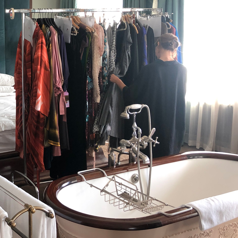 Der bekannte Hamburger Fashionfotograf Felix Krüger hat Alexandra Maria Lara für Magic Moments in Szene gesetzt. Als Location für die Fotoproduktion diente eine opulente Suite im Soho House in Berlin, die mit Samtsofa im XL-Format, antiken Möbeln und einer freistehenden gusseisernen Badewanne puren Vintage-Flair versprühte.