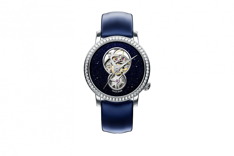 Während Melinda, Chloé, Océane, Stella und Giulia mit einem fein geriffelten Glasrand aufwarten, der in Edelstahl pur oder mit gelbgoldener PVD-Beschichtung gestaltet ist, haben Laura, Ayden und Adriana eine Lünette, die rundum mit funkelnden Labordiamanten ausgefasst ist. Bei den Zifferblättern folgt jede Damenuhr ihrem eigenem Farbkonzept. „Laura“ zum Beispiel fasziniert mit einem dunkelblauen Aventurin-Zifferblatt, das die Magie des nächtlichen Sternenhimmels einfängt und die mit im Labor gezüchteten Diamanten besetzte Lünette ergänzt diesen himmlischen Auftritt perfekt. Getragen wird „Laura“ an einem marinefarbenen Satinarmband, das ihr ebenfalls äußerst gut steht.