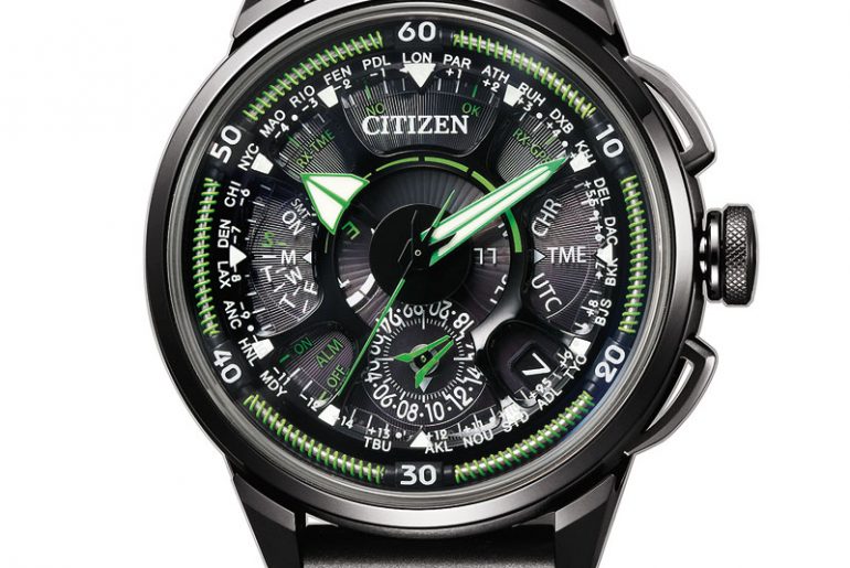 Das Design der „Satellite Wave GPS F990“ passt perfekt zu der modernen Technik der Uhr: Auf dem schwarz-grauen Zifferblatt rotieren leuchtgrüne Zeiger. Auch die Funktionsanzeigen sind hellgrün, ebenso wie die Spiralen rund um das Zifferblatt, die für die Umlaufbahn der Erde stehen. Das stattliche, 48,5 Millimeter große Gehäuse ist aus besonders kratzfestem Super-Titaniuim gefertigt und wird an einem Urethan-Armband getragen. Seine Energie erhält die „Satellite Wave GPS F990“ durch die Eco-Drive Technologie von Citizen. Diese ermöglicht die Umwandlung selbst von schwachem Licht in Antriebsenergie für die Uhr. Ein Indikator für die Beleuchtungsstärke zeigt bei diesem Modell sogar an, wie stark eine Lichtquelle ist und wie gut sie sich zum Aufladen der Eco-Drive Uhr eignet. Die auf 1500 Stück limitierte „Satellite Wave GPS F990“ kostet ca. 2495 Euro.