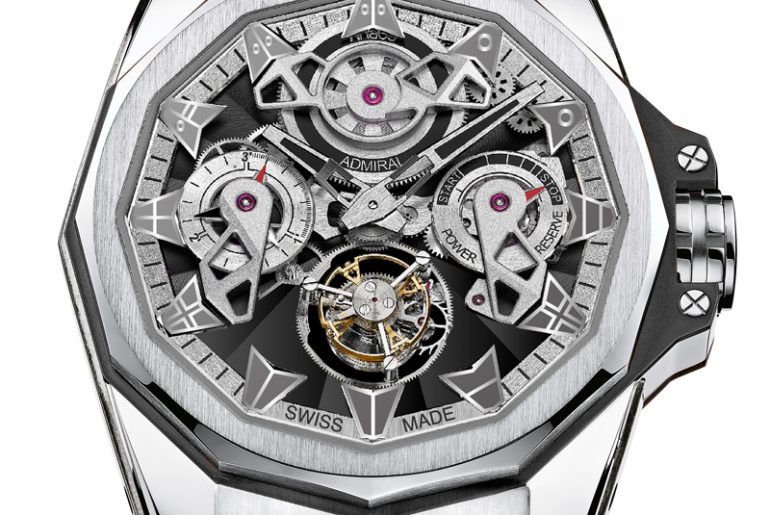 Overflow für das Auge: Das Zifferblatt der Neuheit „Admiral AC-One 45 Openworked Tourbillon” von Corum bietet so viele Sensationen, dass man nicht weiß, wohin man zuerst blicken soll.