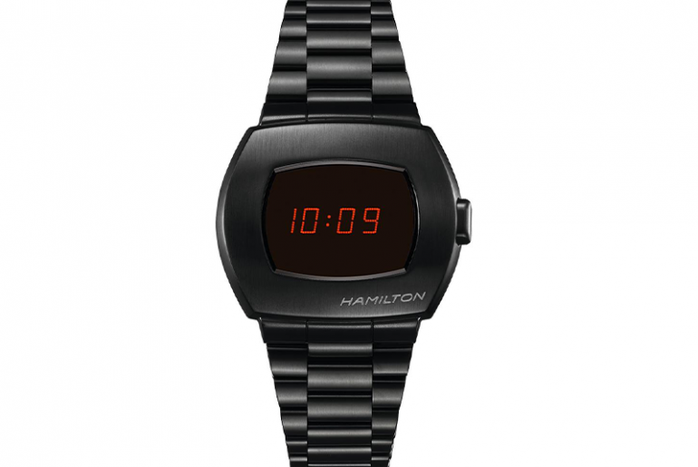 Zurück in die Zukunft: Die neue PSR von Hamilton präsentiert sich in markantem Schwarz und ist eine gelungene Hommage an die legendäre „Hamilton Pulsar“ von 1970.